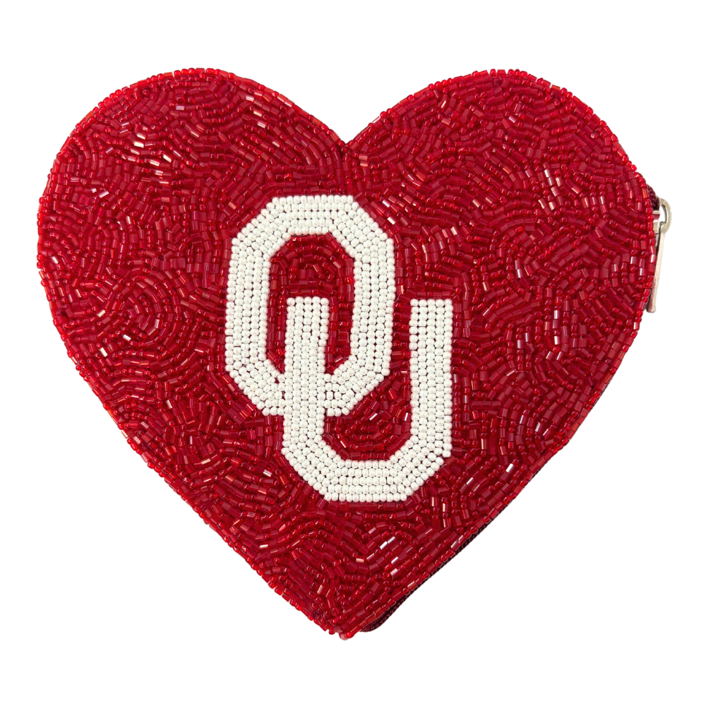 Fall in LOVE with your OU Sooners all over again with our unique OU Heart Beaded Coin Bag with side zip. Our exclusive heart design slides perfectly in your clear stadium bag to give it that extra glam! With beautiful beading on both sides, you'll shine from all angles!