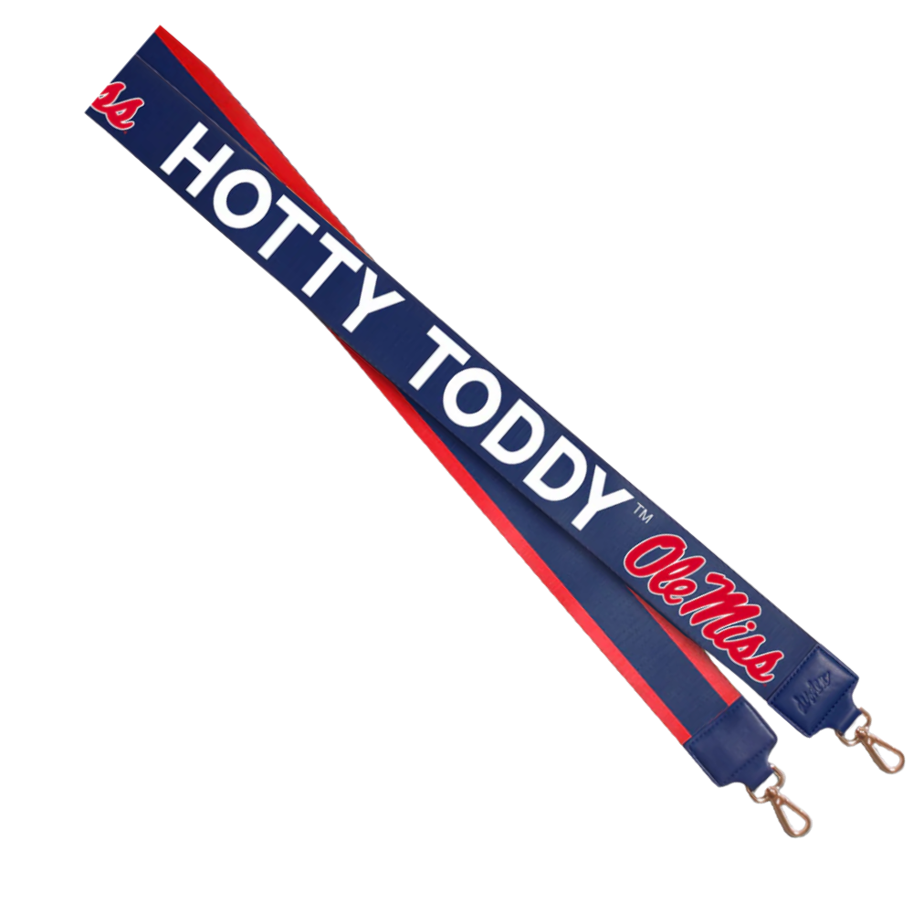 There's no better time to elevate your clear bag status by accessorizing your Game Day clear bag look with our dual sided strap in Ole Miss colors! Choose your look with either the striped side or cheer on your team with HOTTY TODDY!