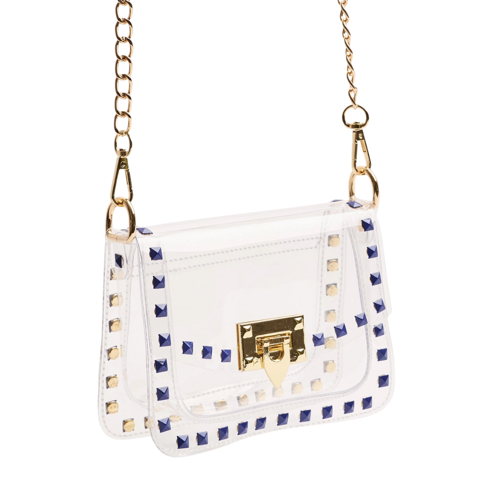 LOTTIE PYRAMID STUD CLEAR STADIUM BAG- ROYAL BLUE