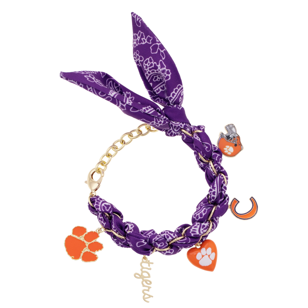 Inspired by classic bandana prints, this adorable charm bracelet shows off your Clemson Tiger pride with the sweetest little twist. It’s the cutest way to sprinkle some spirited style into your wrist stack and keep your game-day look extra glam.