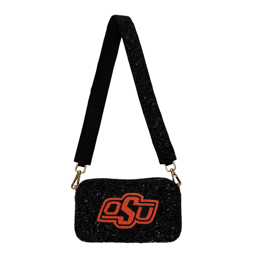 Elevate your everyday style while showing off your team pride with our dual sided beaded OSU Handbag, complete with a matching removable beaded strap for an effortlessly coordinated look. This stunning accessory is the perfect blend of fashion and fandom.