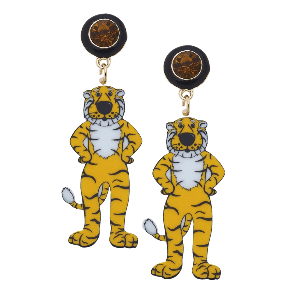 Add a dash of charm to your game day look with the Missouri Tigers mascot Resin Earrings. These lightweight earrings mix classic style with spirited team pride, making them perfect for fans who want to keep their Mizzou spirit shining every day. Show off your love for the Tigers with a playful, elegant accessory that’s as stylish as it is fun.