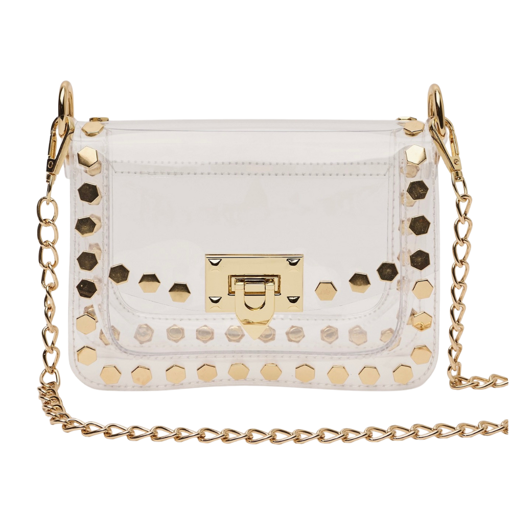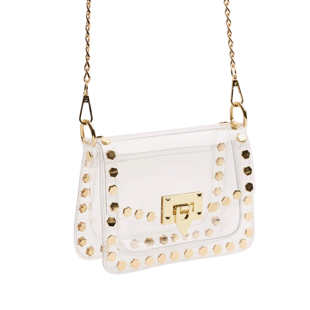 LOTTIE HEXAGON STUD CLEAR STADIUM BAG- GOLD
