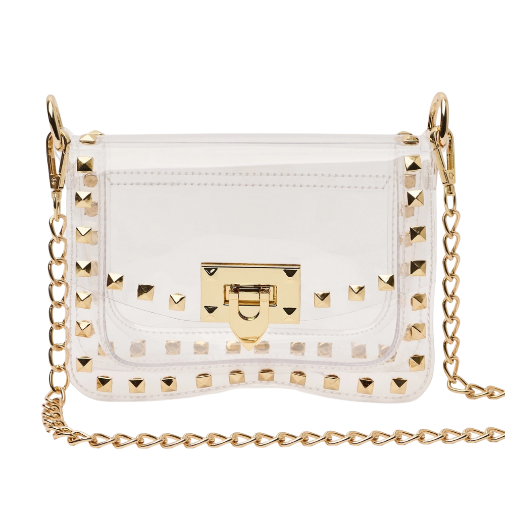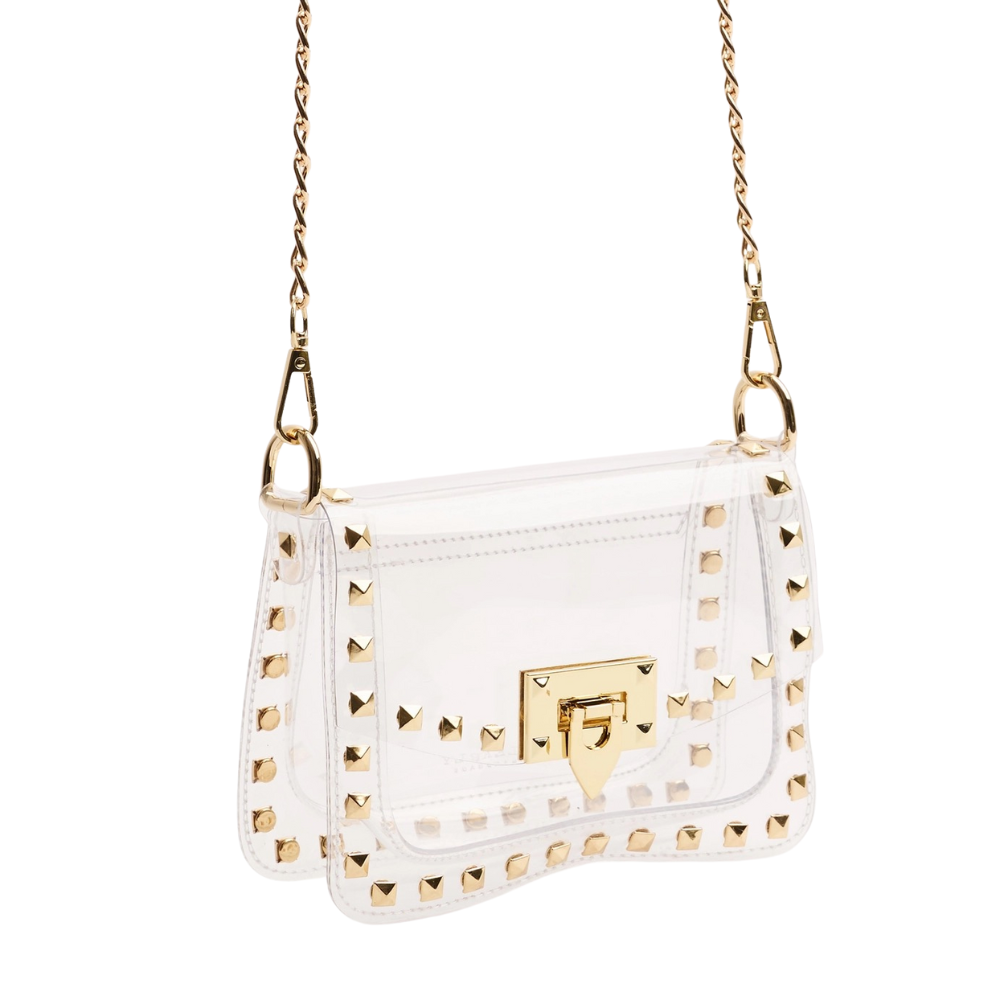 Meet The Lottie — the standout in our clear handbag collection. This iconic style redefines the category by proving clear handbags can be both refined and functional. Accented with pyramid studs and a polished gold chain, The Lottie is stadium compliant and thoughtfully sized for your phone, wallet, keys, lip gloss, and other essentials. Available in 10 classic colors.