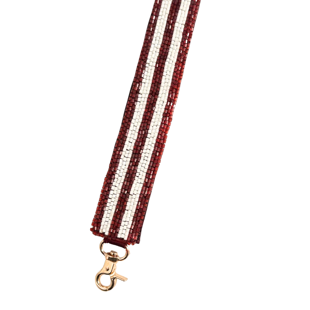 Get ready to elevate your Game Day Glam and cheer your team on in style. Add a pop of spirit to your clear bag with our new Maroon and White beaded bag strap — the perfect blend of fashion and fandom!