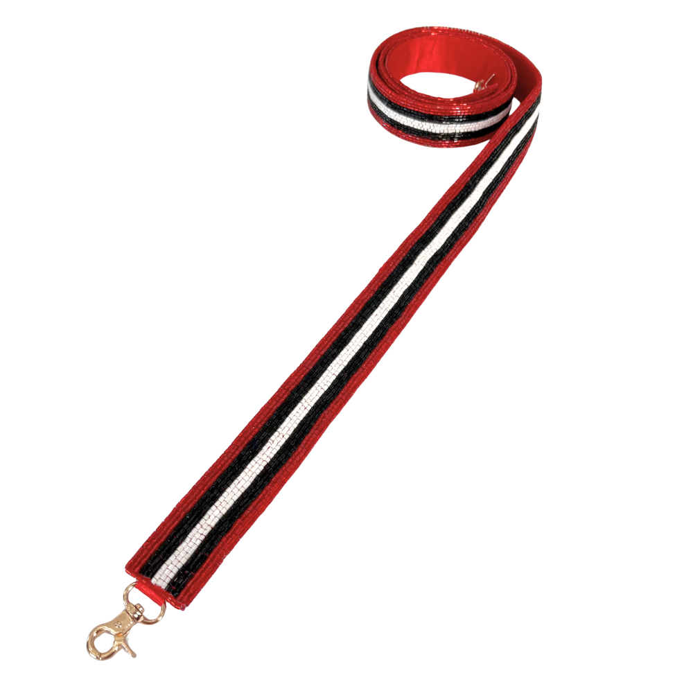 Get ready to elevate your Game Day Glam and cheer your team on in style. Add a pop of spirit to your clear bag with our new Red, White, & Black beaded bag strap — the perfect blend of fashion and fandom!