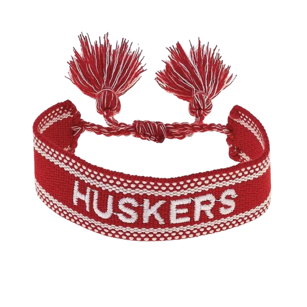 Show your Huskers pride with this playful Woven Tassel Bracelet. Lightweight and colorful, it adds a fun pop to your game day look while keeping you comfortable. Perfect for layering or wearing solo, it’s an easy way to cheer on your team in style.