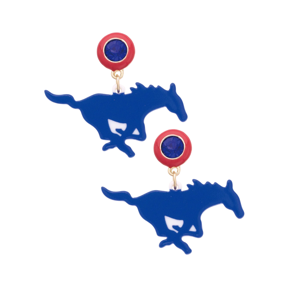 Show off your Mustang pride with these playful SMU Mustangs Resin Mascot Earrings. Featuring the beloved mascot in vibrant red and blue resin, they add a fun and spirited touch to any outfit. Perfect for game days or everyday wear, these earrings let you celebrate your team in style.