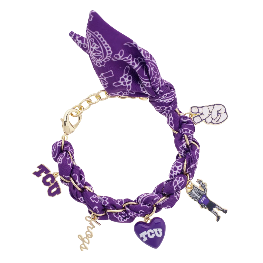 Inspired by classic bandana prints, this adorable charm bracelet shows off your TCU Horn Frog pride with the sweetest little twist. It’s the cutest way to sprinkle some spirited style into your wrist stack and keep your game-day look extra glam.