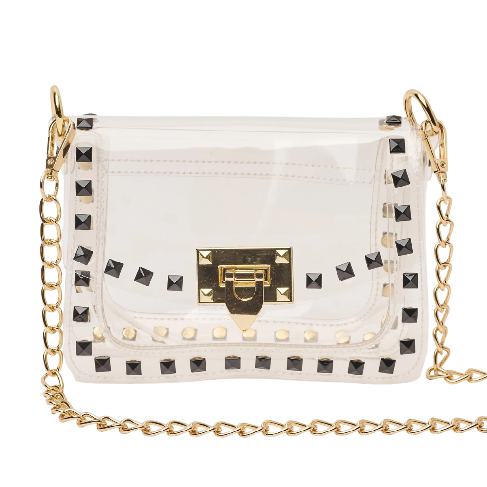 Meet The Lottie — the standout in our clear handbag collection. This iconic style redefines the category by proving clear handbags can be both refined and functional. Accented with pyramid studs and a polished gold chain, The Lottie is stadium compliant and thoughtfully sized for your phone, wallet, keys, lip gloss, and other essentials. Available in 10 classic colors.