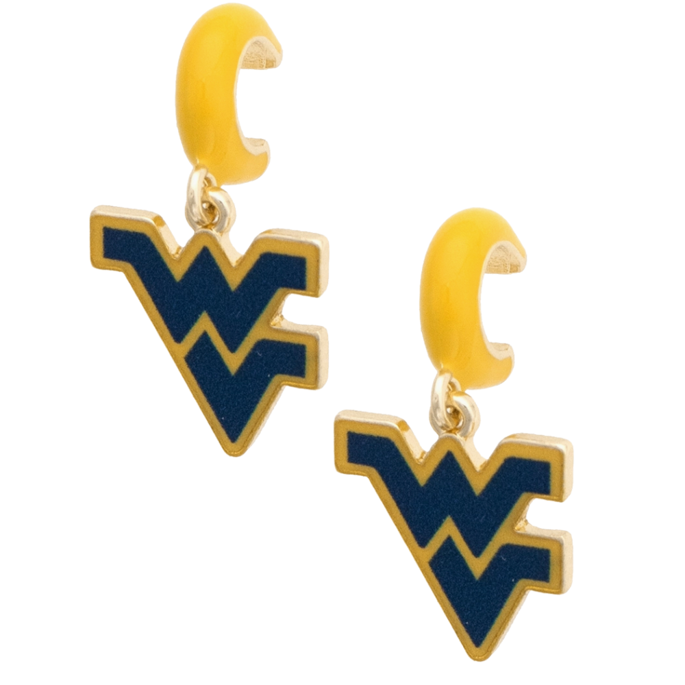 Show off your Mountaineer spirit with a fun twist! These West Virginia Mountaineer Enamel Logo Huggie Hoop Earrings feature a shiny yellow gold hoop accented by the navy WVU logo in enamel. Perfect for adding a playful yet polished touch to any outfit, they let you cheer on your team with subtle style and a wink of charm.