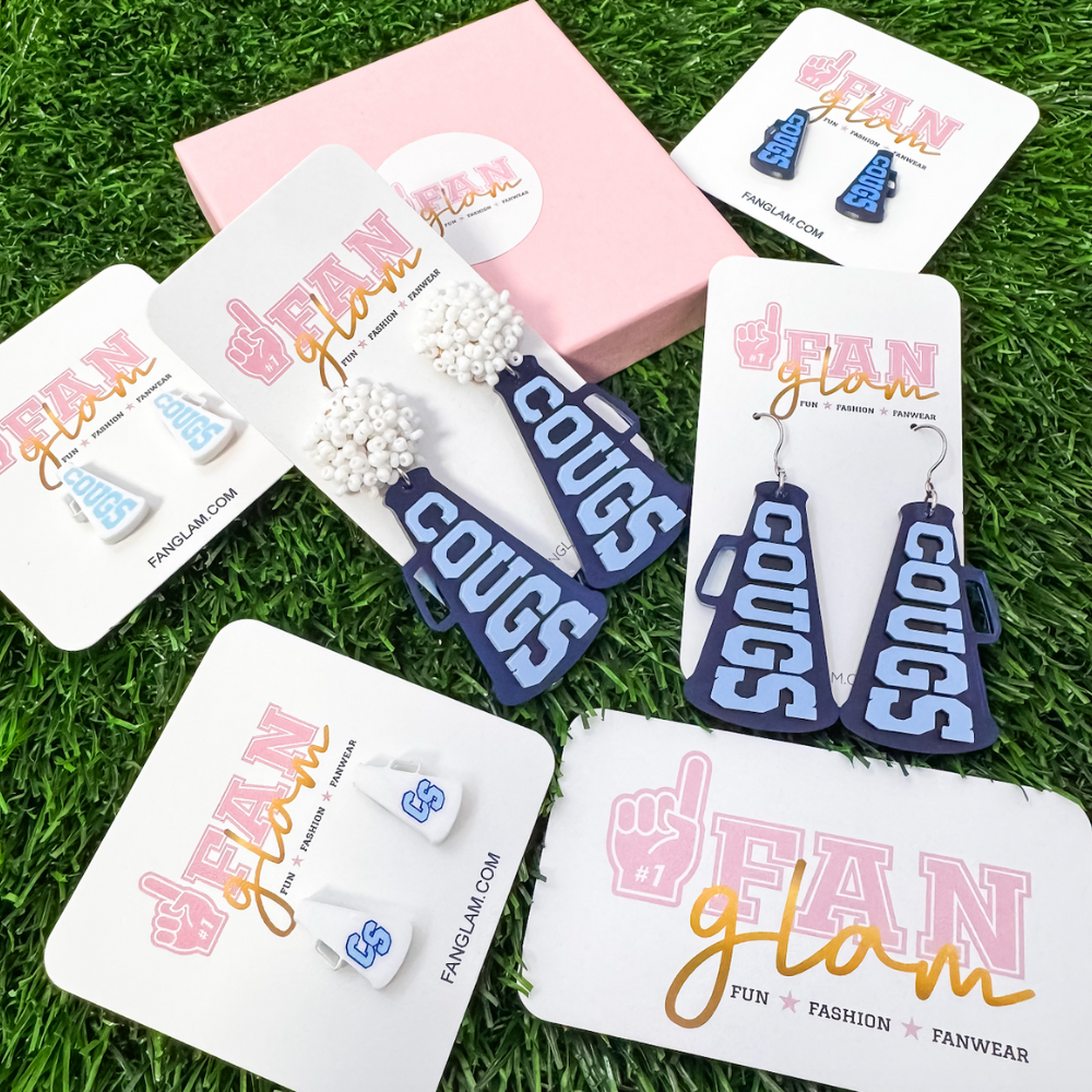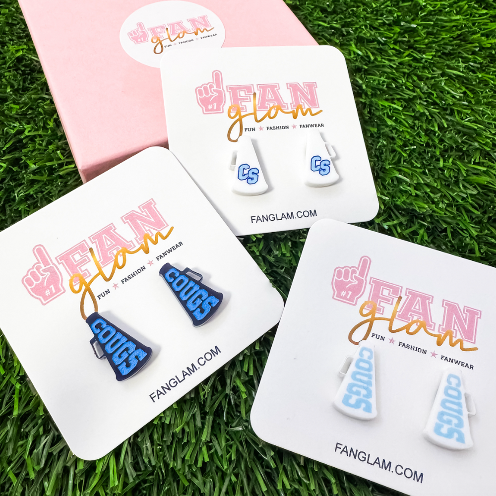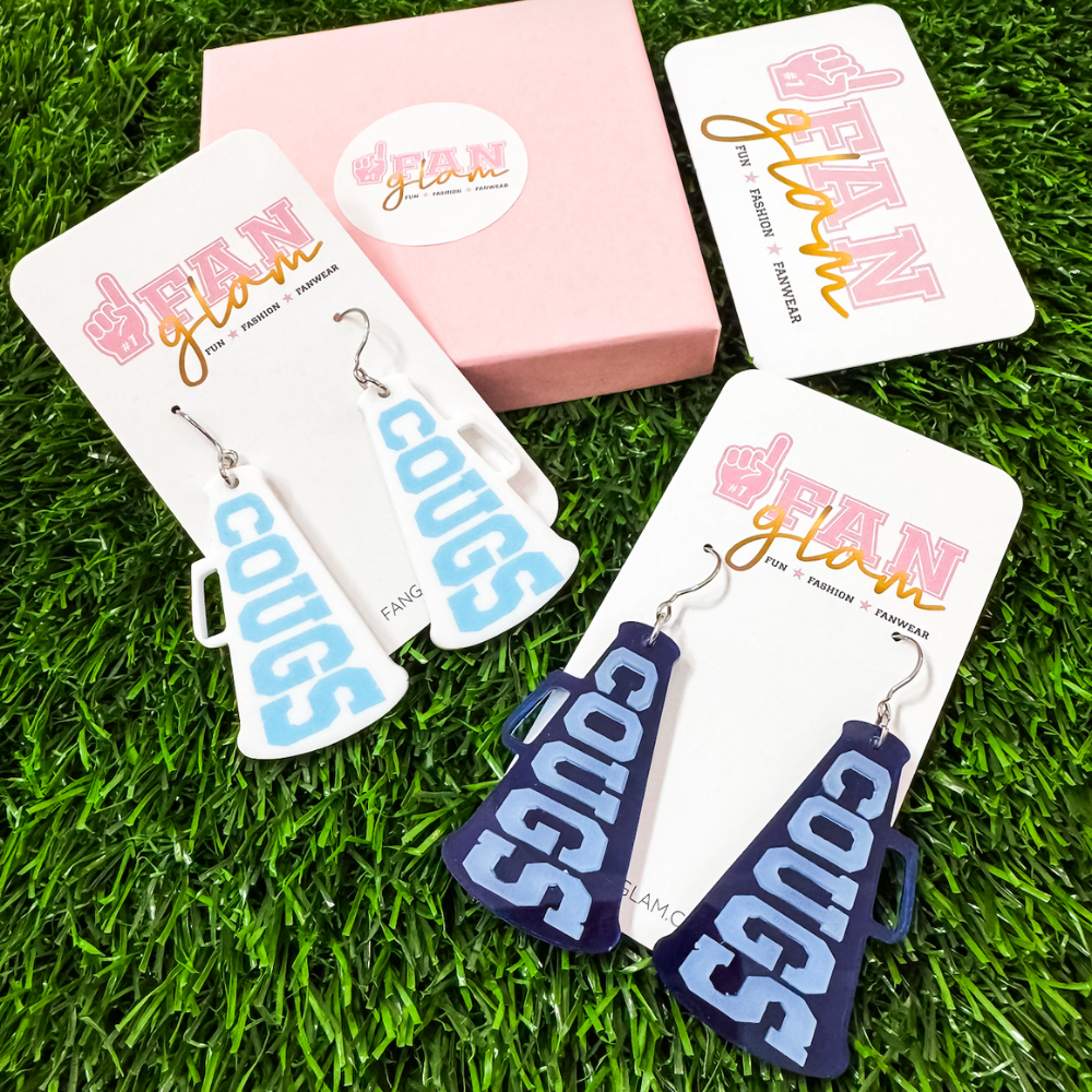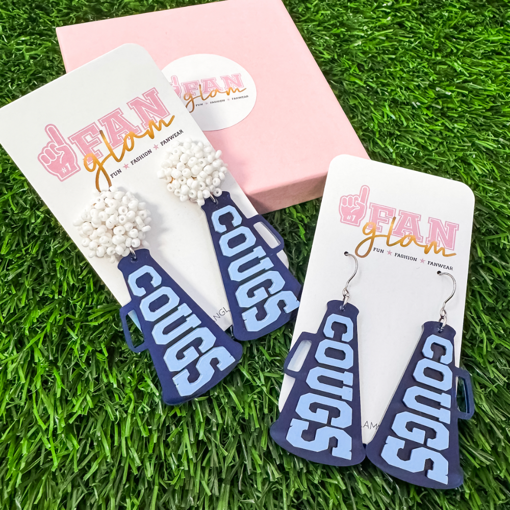 When in doubt, cheer it out. Add more GLAM and team spirit in State stands when wearing our custom COUGS megaphone dangles and studs.